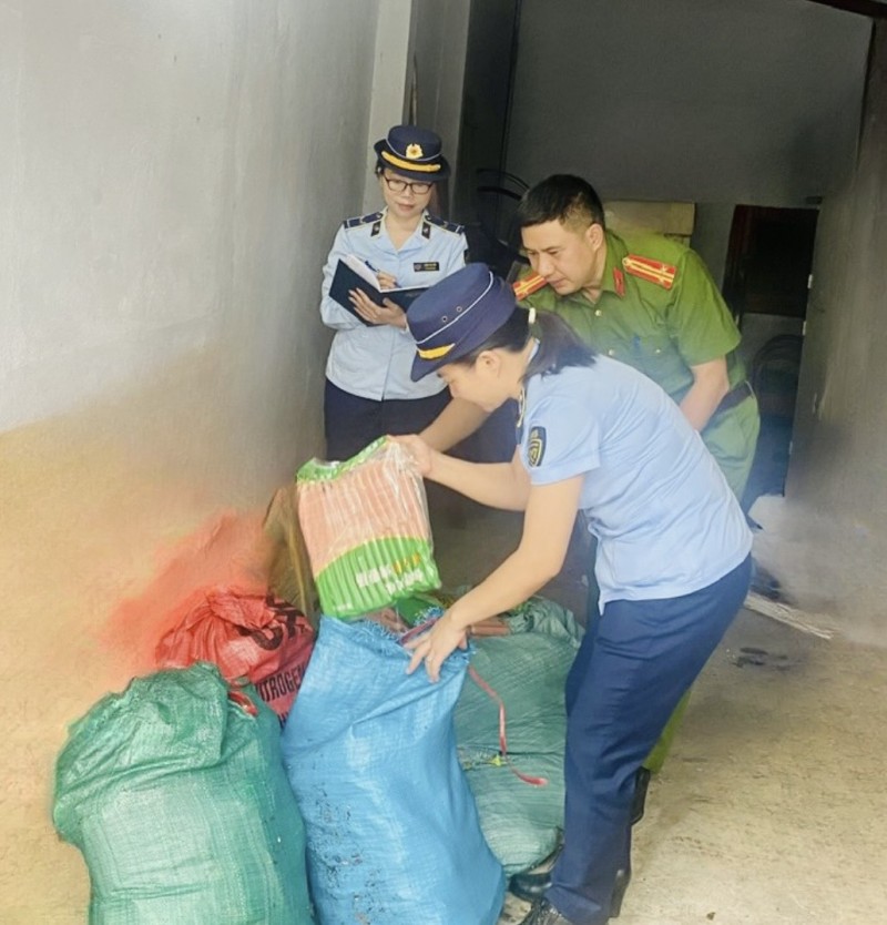 | Lực lượng chức năng kiểm đếm hàng hoá vi phạm |