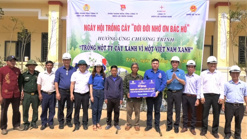 Nằm trong các hoạt động hưởng ứng Tháng Thanh niên năm 2023, ngày 18/3, Đoàn Thanh niên, Công đoàn Tổng công ty Điện lực miền Trung và Công ty Điện lực Quảng Nam đã tổ chức ngày hội trồng cây “Đời đời nhớ ơn Bác Hồ” tại xã Tr’Hy huyện Tây Giang, hưởng ứng chương trình trồng 1 tỷ cây xanh giai đoạn 2021-2025 của Chính phủ vì một Việt Nam xanh.