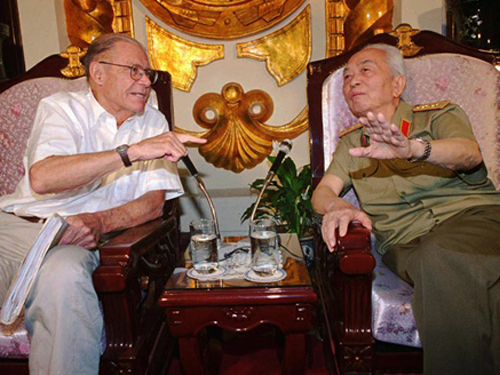 CôngThương - Ngày 9/11/1995, Đại tướng Võ Nguyên Giáp và cựu bộ trưởng Quốc phòng Mỹ Robert McNamara có cuộc gặp gỡ đầu tiên, tại nhà khách Bộ Quốc phòng ở Hà Nội. McNamara là bộ trưởng Quốc phòng Mỹ từ năm 1961-1968, được coi là "kiến trúc sư trưởng" của chiến tranh Việt Nam.