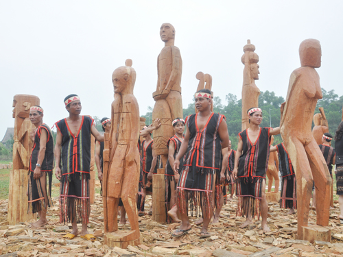 CôngThương - Những bàn tay tài hoa của các nghệ nhân dân tộc Xơ Đăng, Ba Na, Jrai, Giẻ-Triêng, Brâu, Rơ Mâm... chế tác và hoàn thiện 180 tác phẩm tượng Tây Nguyên trong các lĩnh vực văn hoá, nghệ thuật, đời sống, tín ngưỡng như: Tượng già làng; tượng người phụ nữ giã gạo, dệt vải; người đàn ông đi săn; lên rẫy; người chơi nhạc cụ; lễ ăn trâu, lễ bỏ mả…