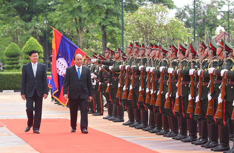 | Thủ tướng Nguyễn Xuân Phúc và Thủ tướng Lào Thongloun Sisoulith duyệt đội danh dự |