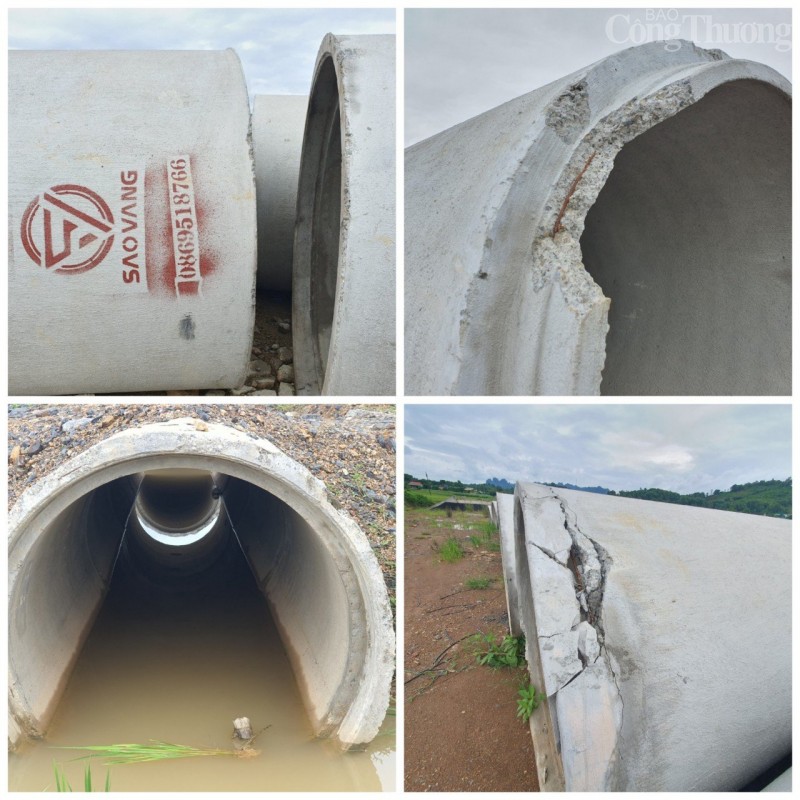 | Nhiều ống cống mang thương hiệu cống Sao Vàng vứt ngổn ngang tại dự án, có dấu hiệu nứt vỡ, hư hỏng. |