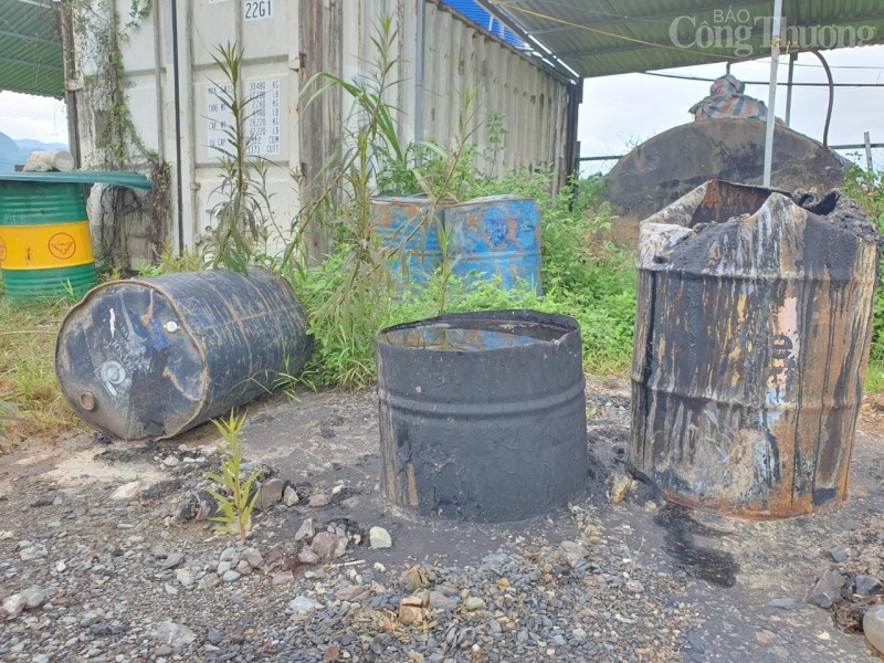 | Các thùng phi chứa nhựa đường, xăng dầu không được đậy nắp tại công trường dự án. |