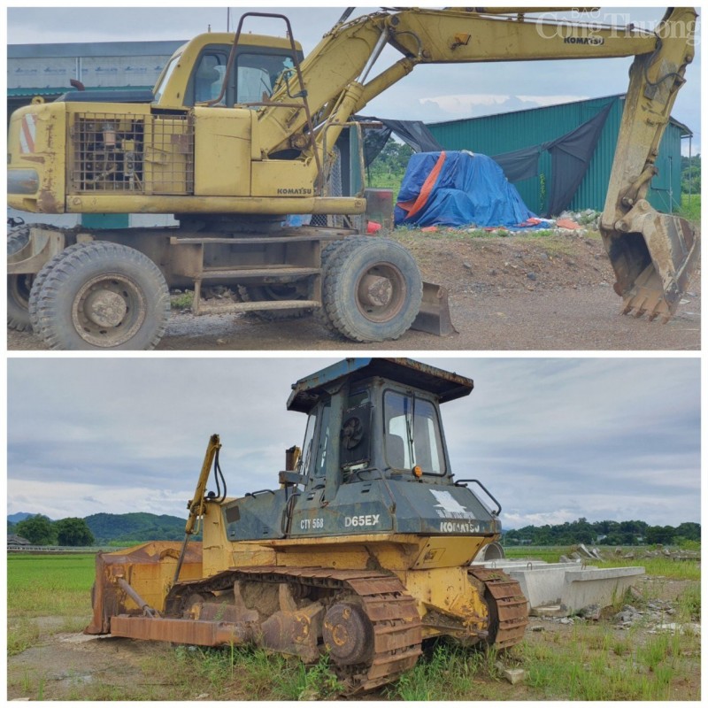 | Nhiều phương tiện như máy xúc, xe lu nằm im lìm giữa dự án hoang tàn mọc đầy cỏ dại. |