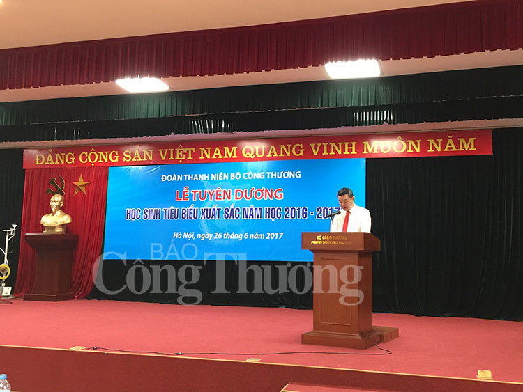 Phát biểu tại lễ tuyên dương, ông Đỗ Hữu Huy - Bí thư Đoàn Thanh niên Bộ Công Thương đánh giá cao các thành tích mà các em học sinh đã đạt được trong năm học vừa qua và mong rằng, các em sẽ cố gắng phát huy hơn nữa những thành tích đó. Kết thúc năm học 2016-2017, nhiều con cán bộ công nhân viên Bộ Công Thương đã đạt giải cao trong các cuộc thi cấp trường, quận, thành phố, quốc gia... Những thành tích của các em chính là động lực lớn để bố mẹ các em yên tâm công tác, đóng góp cho ngành công thương nước nhà.