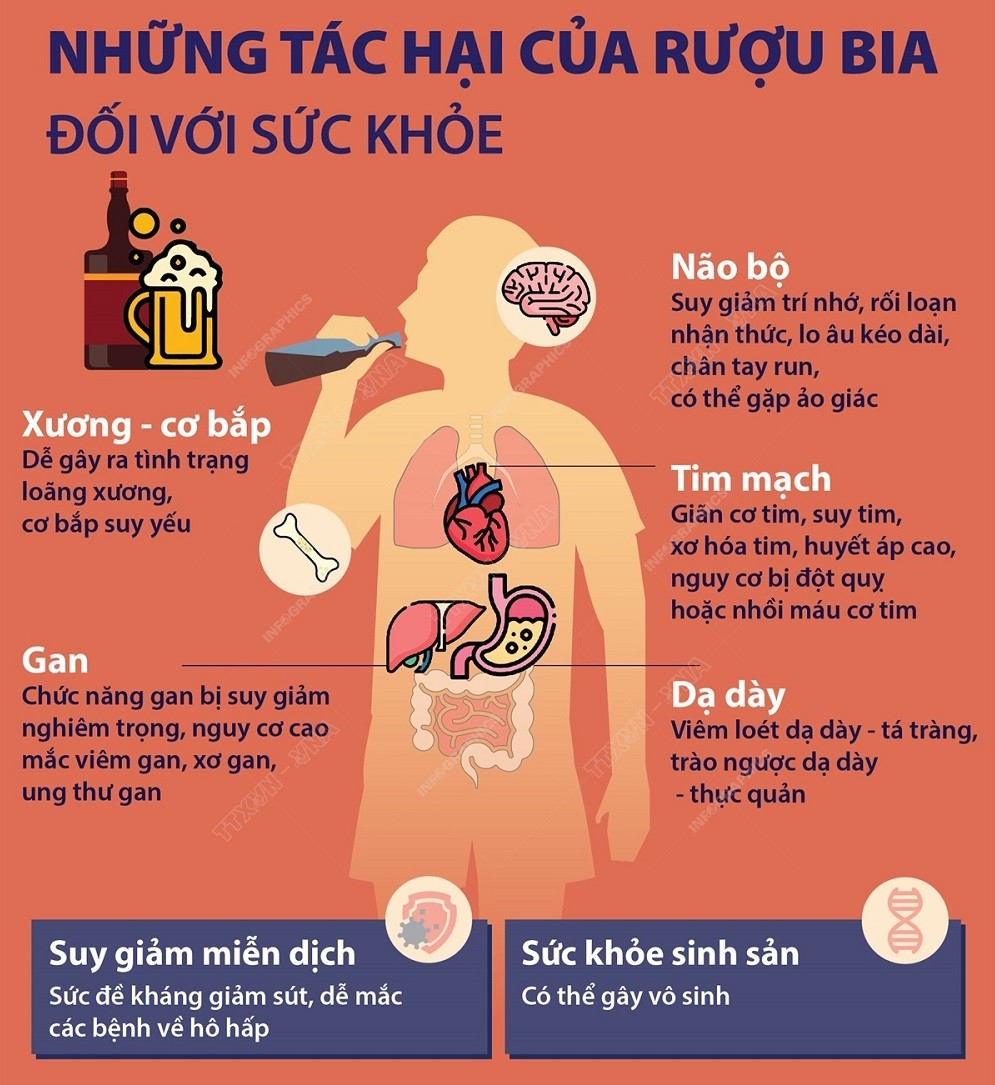 Đặc biệt, không sử dụng rượu bia trong các trường hợp: điều khiển phương tiện cơ giới, vận hành máy móc, phụ nữ đang mang thai hoặc đang cho con bú, đang điều trị thuốc có phản ứng với cồn, có các tình trạng bệnh lý mà rượu bia làm cho bệnh nặng lên.