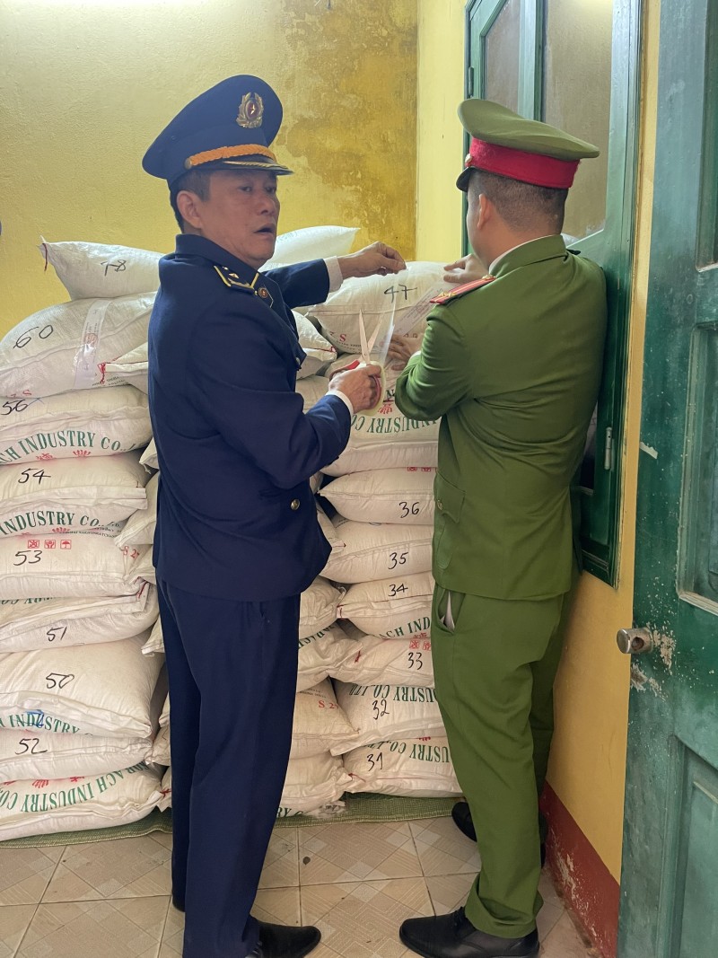 Kiểm tra trên thùng xe, phát hiện có 60 bao loại 50 kg/bao có tổng trọng lượng 3 tấn đường cát trắng nhập khẩu do nước ngoài sản xuất có giá trị khoảng 60 triệu đồng.