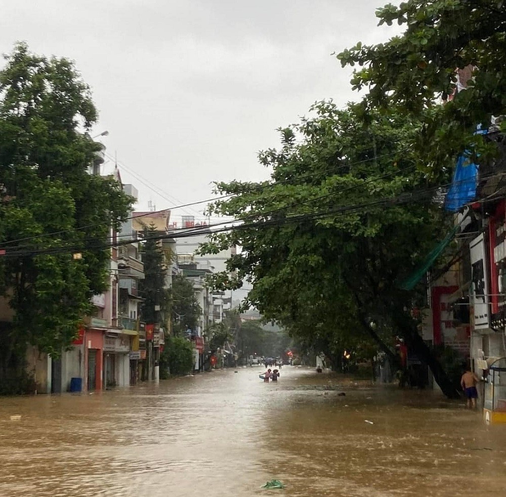 | Do Thủy điện Tuyên Quang xả toàn bộ 8 cửa, các huyện vùng hạ du, trong đó có TP. Tuyên Quang chìm trong biển nước |