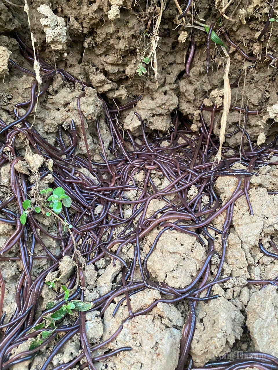 | Hiện tượng lạ, hàng nghìn con giun đất ngoi lên mặt đất, bò lổm ngổm, thành từng búi khiến người dân hoang mang. |