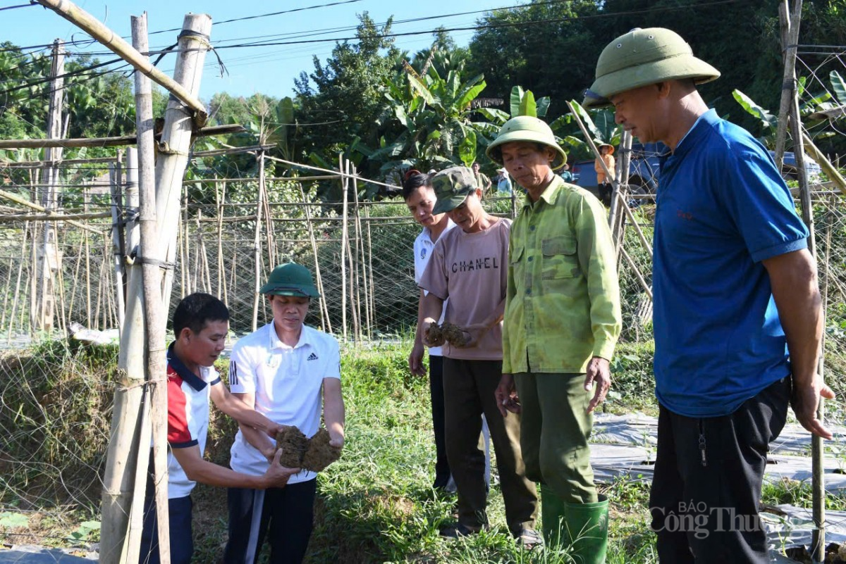 | Qua kiểm tra, đánh giá cả khu vực ruộng dưa có giun bò lên mặt trên khoảng diện tích 15 sào của 6 hộ dân xảy ra hiện tượng lạ nêu trên. |