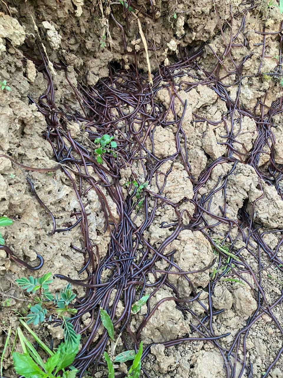 | Giun chui lên mặt đất, tụ tập thành búi gây hoang mang dư luận. |
