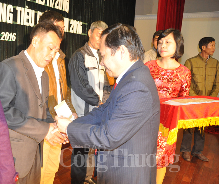 | Ông Bùi Anh Dũng - Giám đốc Công ty tuyển than Hòn Gai - trao thưởng cho các công nhân lao động tiêu biểu 2016 |