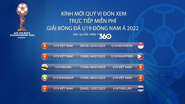 Với tinh thần đưa giải đấu tiếp cận với đông đảo khán giả Việt Nam, TV360 Viettel đã đàm phán trở thành đơn vị phát sóng giải U19 Đông Nam Á 2022 trên tất cả các nền tảng (mobile app TV360, truyền hình Viettel TV...) ở lãnh thổ Việt Nam.