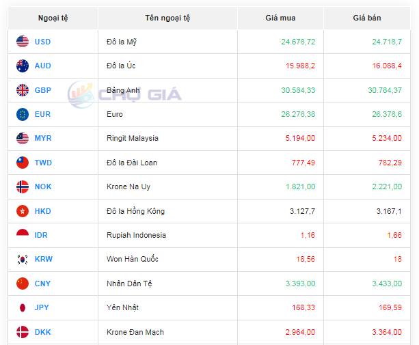 Trong khi đó chiều bán ra có 1 ngân hàng tăng giá bán ra, 2 ngân hàng giảm giá bán và 7 ngân hàng giữ nguyên giá bán so với hôm qua.