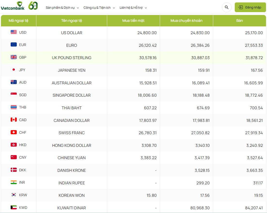 Tại Ngân hàng Vietcombank, sáng nay, giá Đô la Úc mua vào là 15,928 VNĐ/AUD và bán ra ở mức 16,605 VNĐ/AUD.
