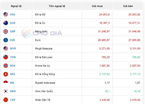 Tương tự, hôm nay Ngân hàng MB cũng điều chỉnh giảm tỷ giá đô la Úc ở cả hai chiều. Giá đô la Úc chiều mua ở mức 15,903 VNĐ/AUD giảm 82 đồng; giá đô la Úc chiều bán ra ở mức 16,625 VNĐ/AUD giảm 87 đồng.