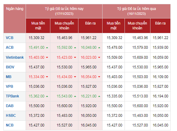 | Tỷ giá AUD hôm nay 17/11/2023: |