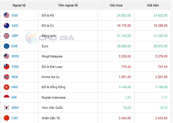 Trong khi đó chiều bán ra có 2 ngân hàng tăng giá bán ra, 3 ngân hàng giảm giá bán và 2 ngân hàng giữ nguyên giá bán so với hôm qua.