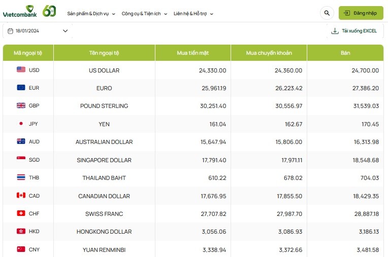 Tỷ giá đô la Úc tại thị trường chợ giá ngày 18/1/2024