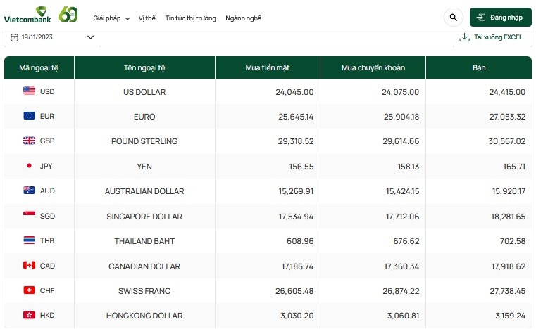 Tỷ giá đô la Úc trong nước hôm nay 19/11/2023