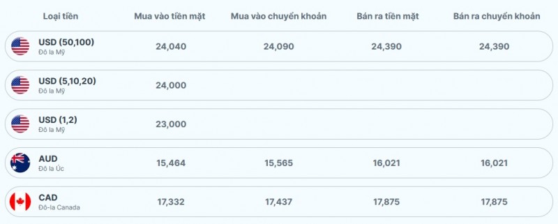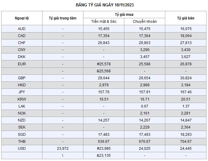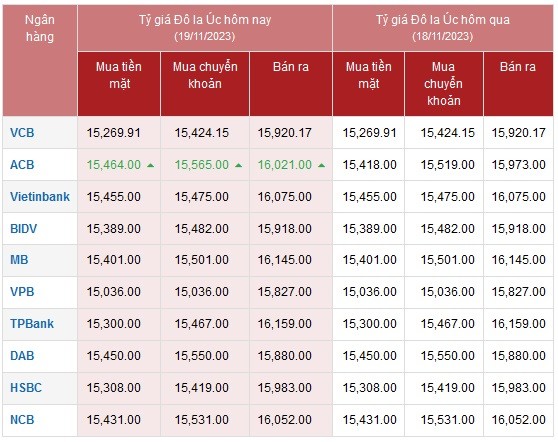 | Tỷ giá AUD hôm nay 19/11/2023 khảo sát tại một số ngân hàng |