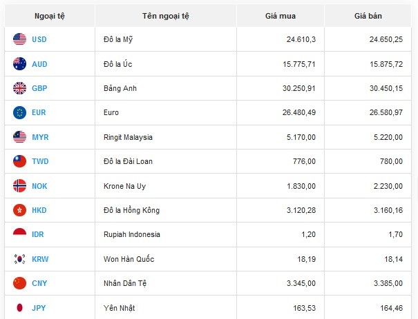Trong khi đó, chiều bán ra cũng chỉ có 1 ngân hàng tăng giá bán ra và 9 ngân hàng giữ nguyên giá bán so với hôm qua.