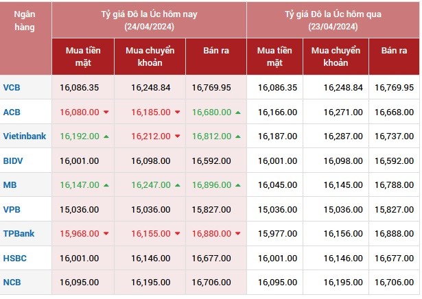 Tỷ giá Đô la Úctại thị trường chợ giá ngày 24/4/2024