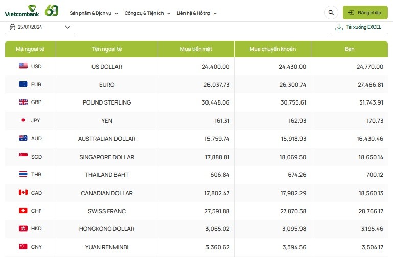 Tỷ giá Đô la Úc tại thị trường chợ giá ngày 25/1/2024