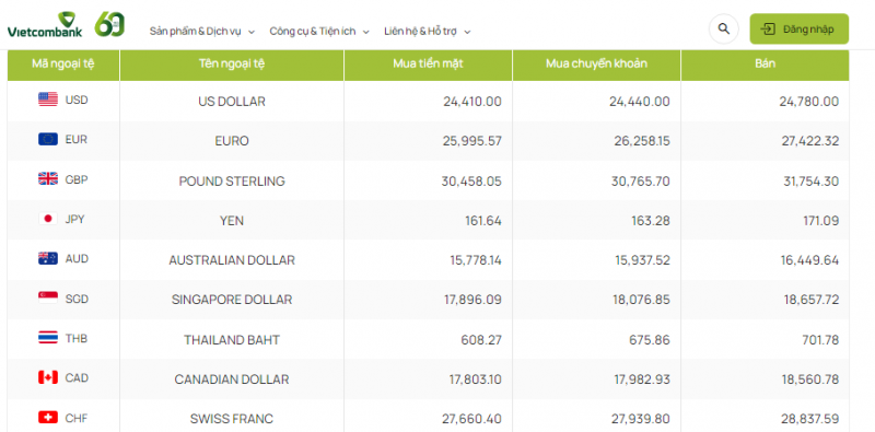 Tại Ngân hàng Vietcombank, so sánh với sáng qua (25/1), hôm nay tỷ giá AUD được ngân hàng điều chỉnh tăng nhẹ mức giá. Tỷ giá Đô la Úc chiều mua vào là 15,759 VNĐ/AUD, tăng 19 đồng; tỷ giá Đô la Úc bán ra là 16,449 VNĐ/AUD cùng tăng 19 đồng.