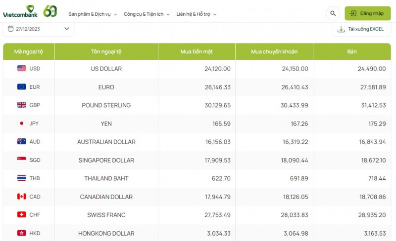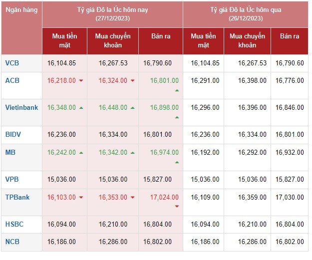 Tỷ giá đô la Úc trong nước hôm nay 27/12/2023