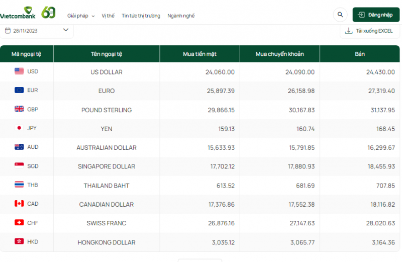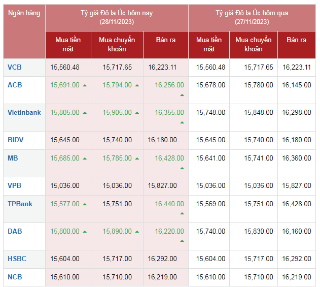 Tỷ giá đô la Úc trong nước hôm nay 28/11/2023