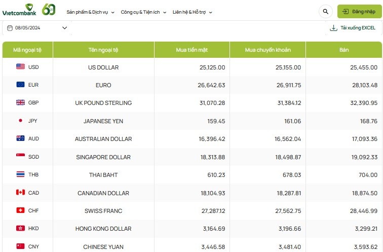 | Tỷ giá AUD hôm nay 8/5/2024. Ảnh chụp màn hình lúc 10h |