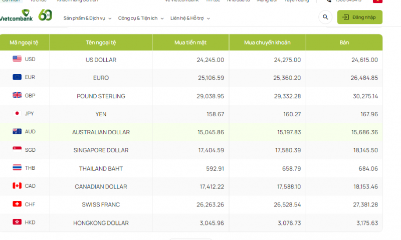 Tại Vietcombank, tỷ giá đô la Úc có mua là 15.045,86 VNĐ/AUD giảm mạnh đến 224 đồng, giá bán ra là 15.686,36 VNĐ/AUD giảm 233 đồng so với tỷ giá mua bán ngày 13/10.