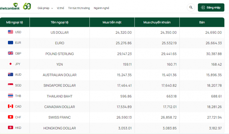 | Tỷ giá đô la Úc hôm nay 19/10/2023 tại Ngân hàng Vietcombank tăng so với tỷ giá đầu giờ sáng qua. Ảnh chụp website |