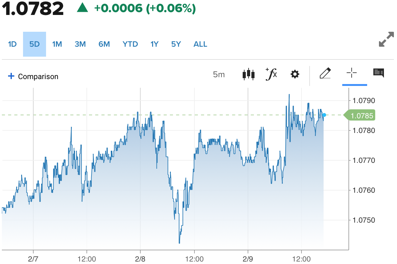 | Diễn biến tỷ giá EUR/USD trên thị trường thế giới (Nguồn: CNBC) |