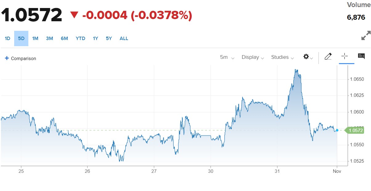 | Diễn biến tỷ giá EUR/USD trên thị trường thế giới (Nguồn: CNBC) |