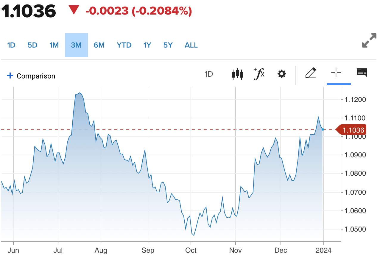 Tỷ giá Euro hôm nay ngày 1/1/2024 trên thị trường thế giới