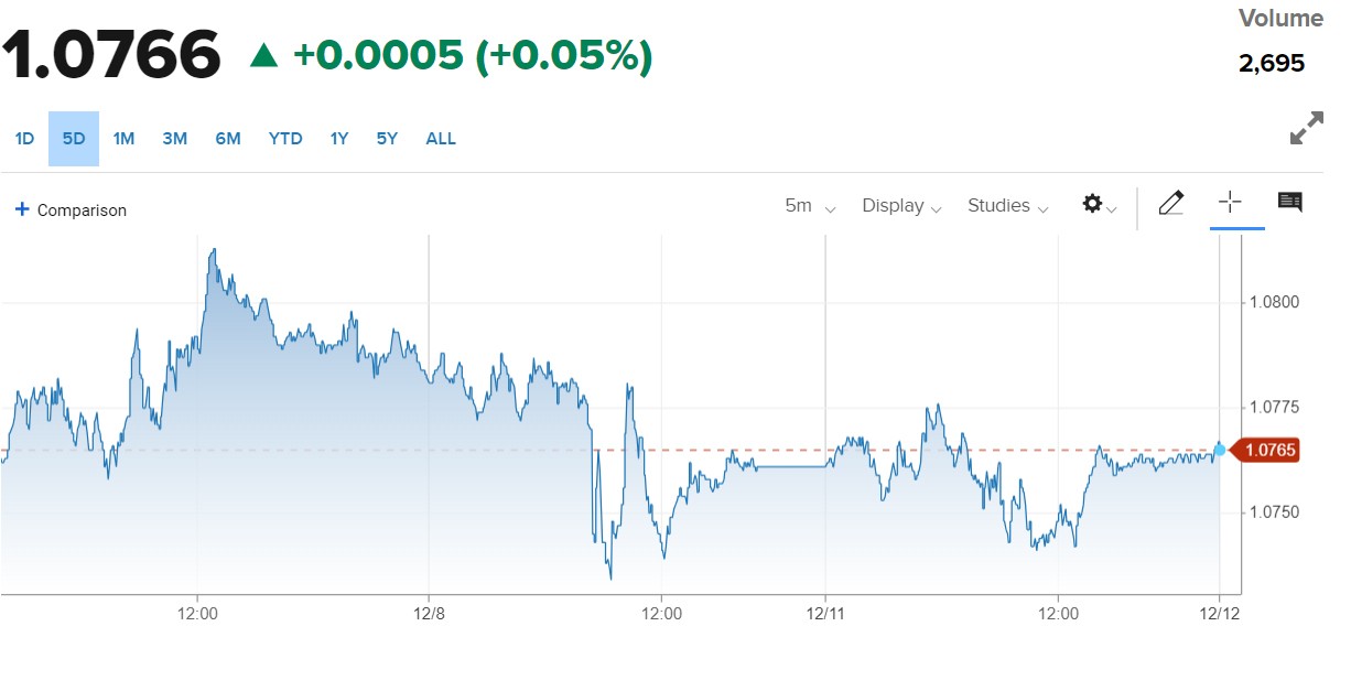| Diễn biến tỷ giá EUR/USD trên thị trường thế giới (Nguồn: CNBC) |