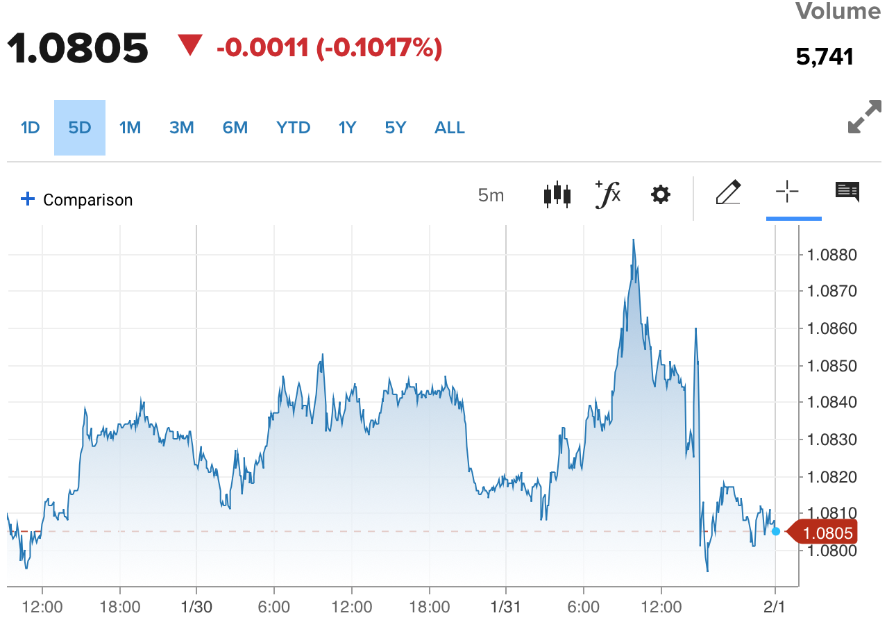 Diễn biến tỷ giá EUR/USD trên thị trường thế giới (Nguồn: CNBC)