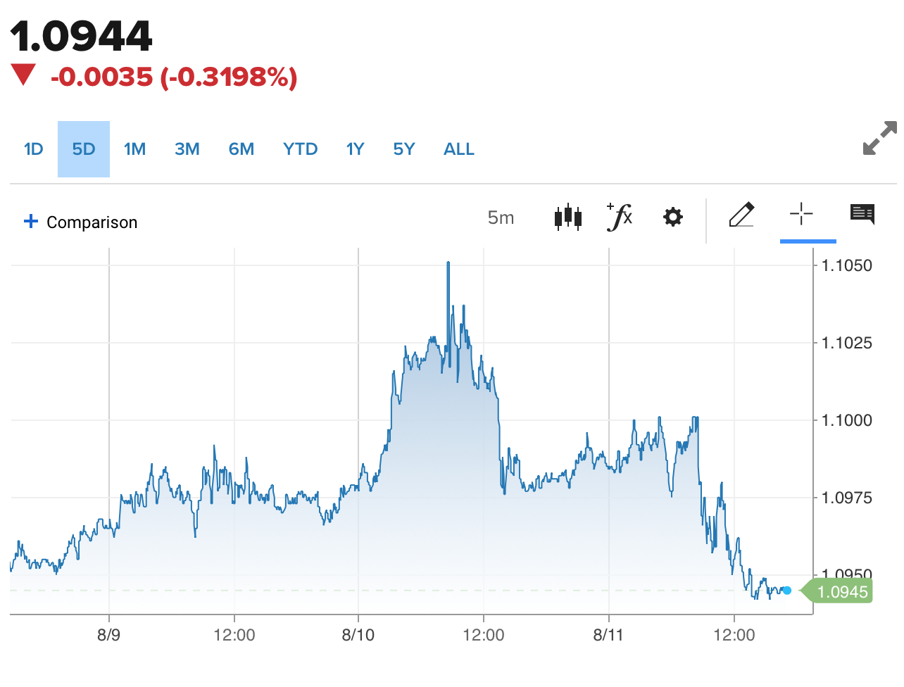 | Diễn biến tỷ giá EUR/USD trên thị trường thế giới (Nguồn: CNBC) |