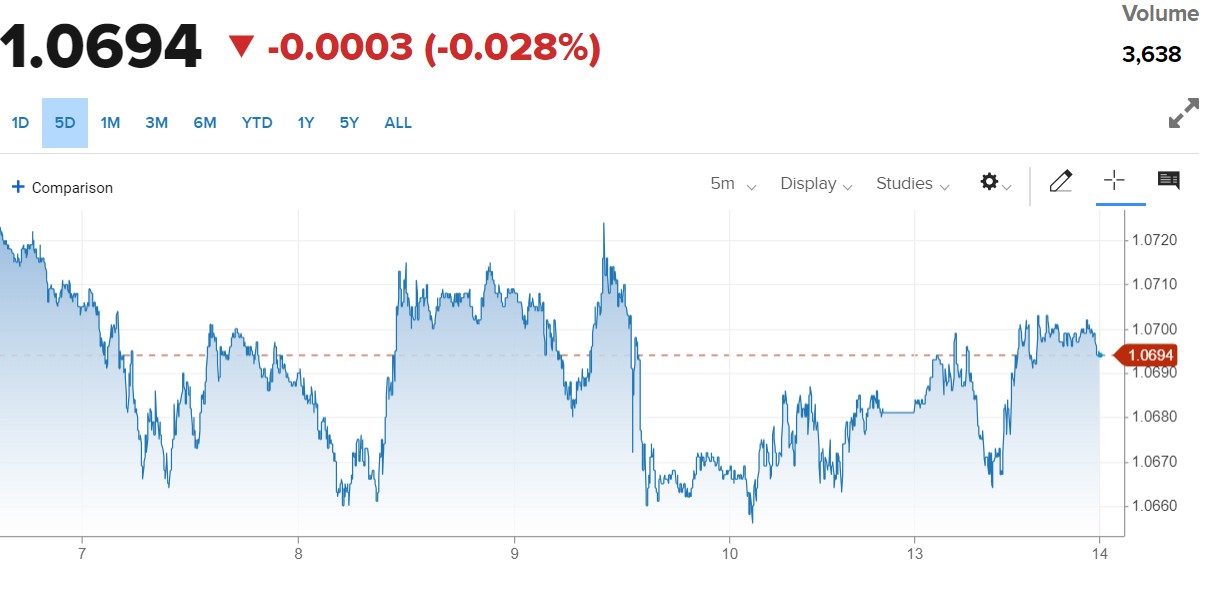 | Diễn biến tỷ giá EUR/USD trên thị trường thế giới (Nguồn: CNBC) |