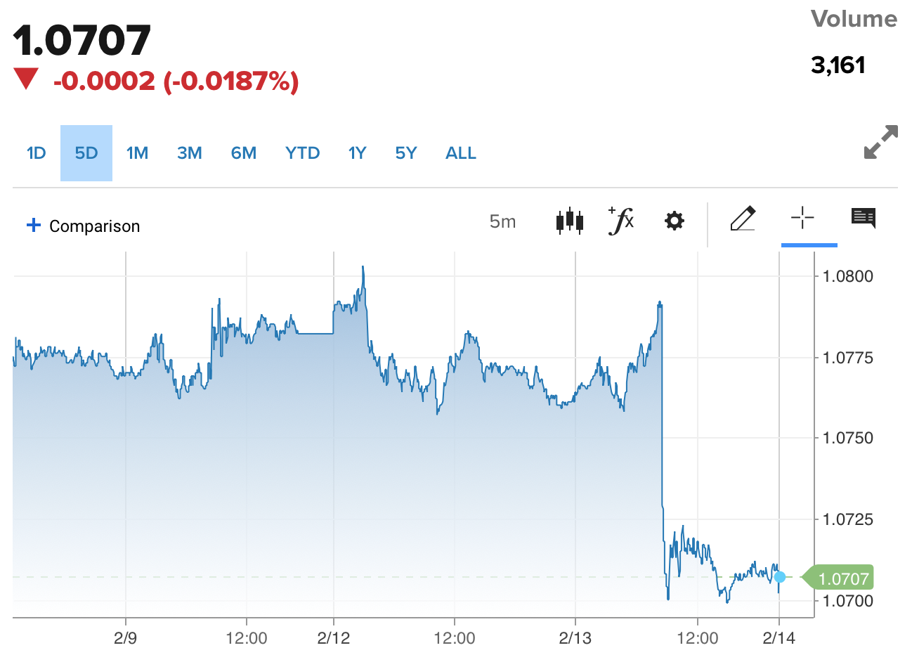 | Diễn biến tỷ giá EUR/USD trên thị trường thế giới (Nguồn: CNBC) |