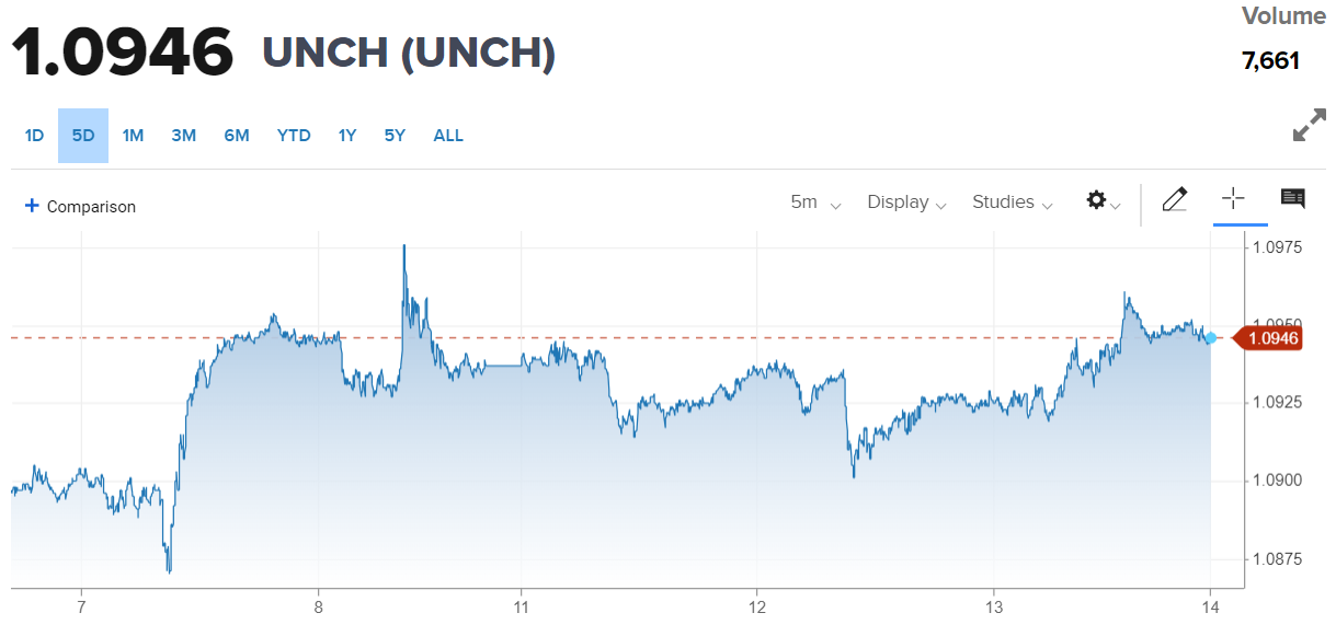 | Diễn biến tỷ giá EUR/USD trên thị trường thế giới (Nguồn: CNBC) |