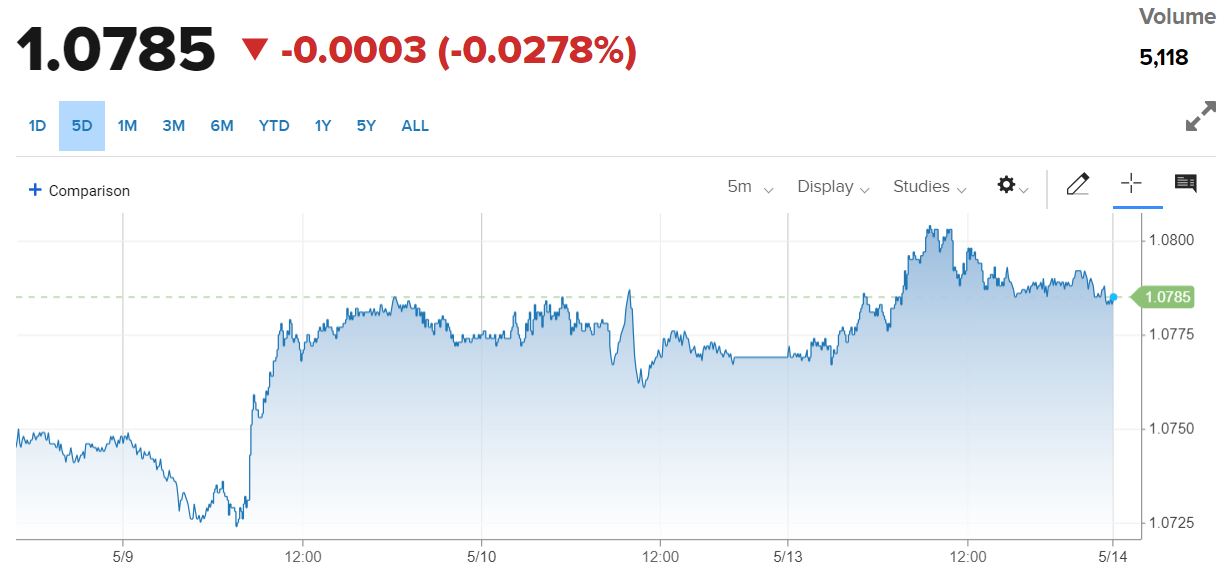 | Diễn biến tỷ giá EUR/USD trên thị trường thế giới. Nguồn: CNBC |