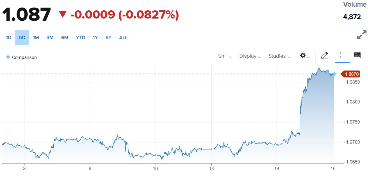 Diễn biến tỷ giá EUR/USD trên thị trường thế giới (Nguồn: CNBC)
