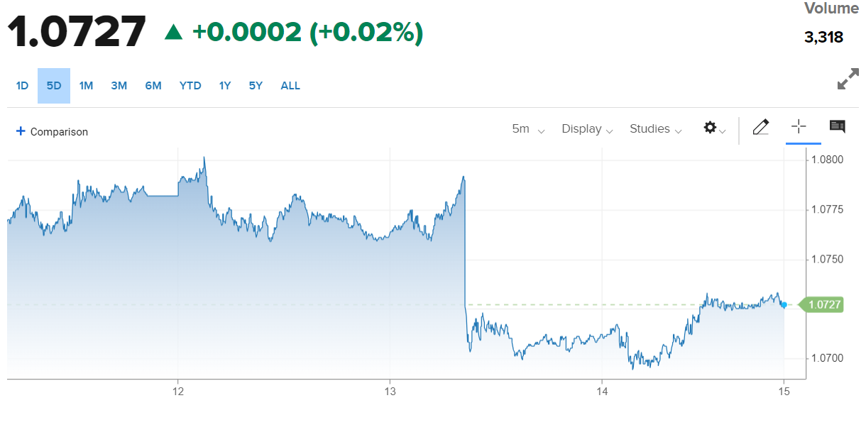 | Diễn biến tỷ giá EUR/USD trên thị trường thế giới (Nguồn: CNBC) |