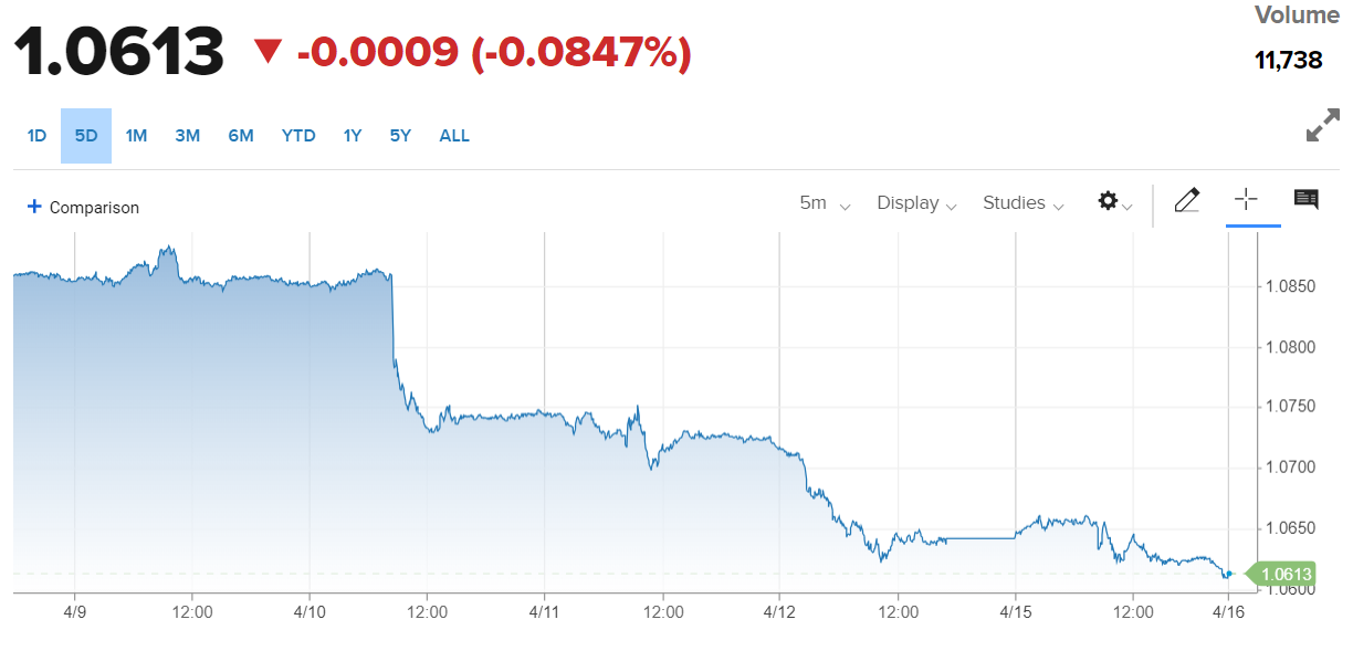 | Diễn biến tỷ giá EUR/USD trên thị trường thế giới (Nguồn: CNBC) |
