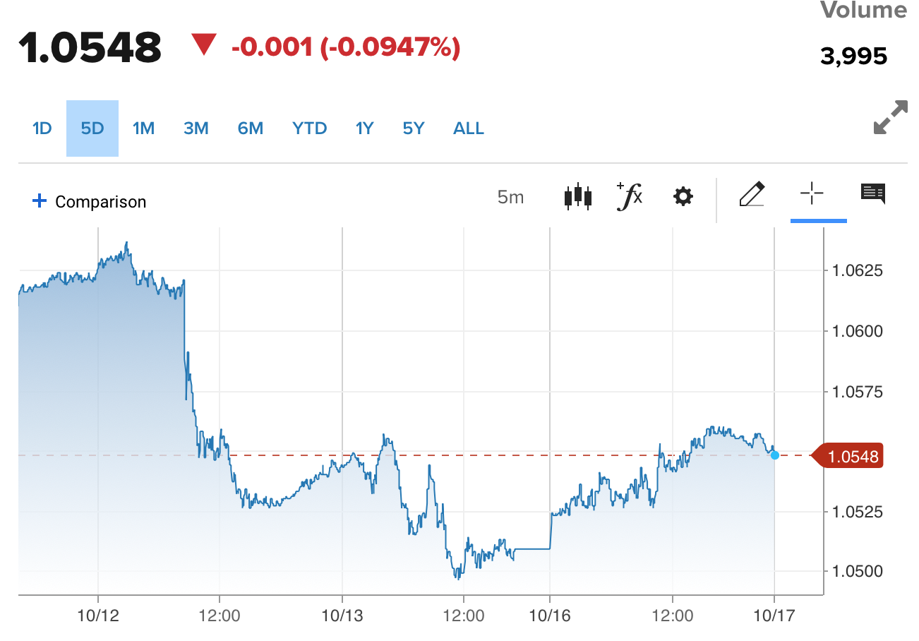 | Diễn biến tỷ giá EUR/USD trên thị trường thế giới (Nguồn: CNBC) |
