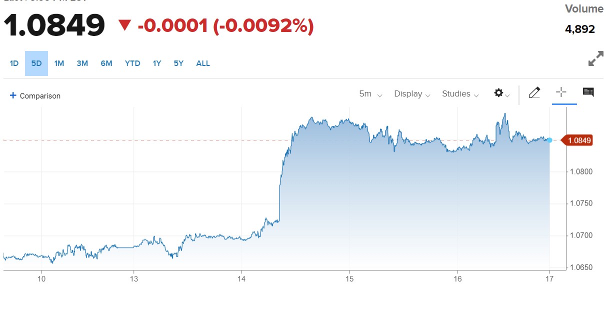 | Diễn biến tỷ giá EUR/USD trên thị trường thế giới (Nguồn: CNBC) |