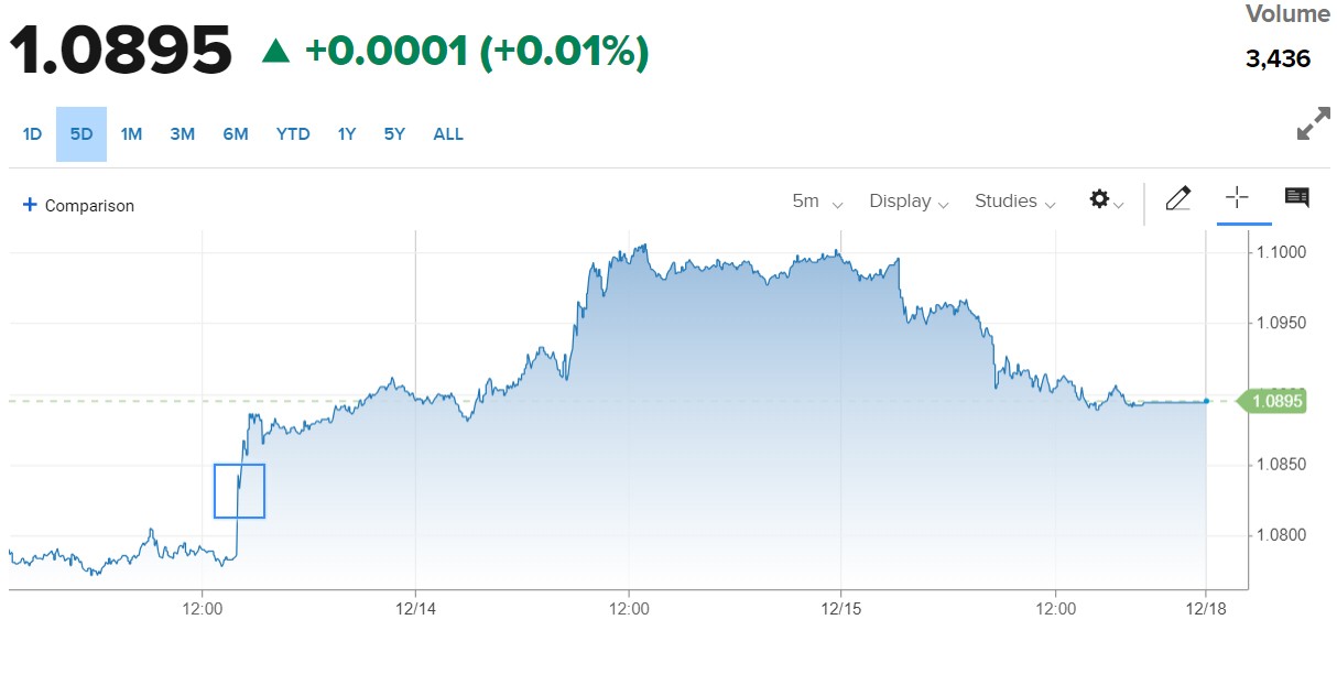 | Diễn biến tỷ giá EUR/USD trên thị trường thế giới (Nguồn: CNBC) |